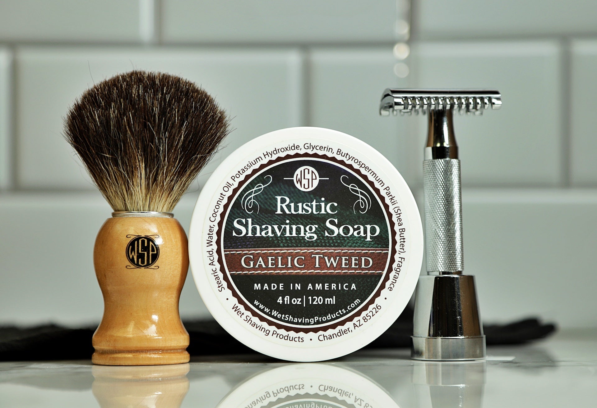 3. The Fuel: Rustic Shaving Soap (4oz) We chose our Rustic (Vegan) base for this kit for one reason: Lather Explosion. This formula is incredibly easy to use. Even if you have never used a brush before, this soap explodes into a rich, slick, high-cushion foam in seconds. It is packed with Shea Butter to moisturize your face while you shave.
